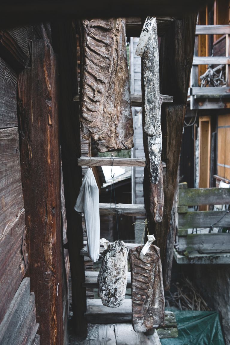 Die Herstellung von Trockenfleisch ist ein fester Bestandteil der Tradition und des alltäglichen Lebens am Natischerberg. Seit vielen Generationen entsteht dieses besondere Produkt in sorgfältiger Handarbeit – getragen von Erfahrung, Geduld und handwerklichem Können. In der klaren Bergluft reift das Fleisch langsam heran und nimmt den unverwechselbaren Geschmack an, den das alpine Klima, die Zeit und die Sorgfalt der Menschen hier prägen.