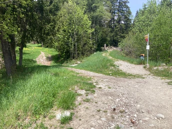 Der Weg ist nicht kinderwagentauglich (unbefestigte Waldwege, Wurzeln und Stufen).