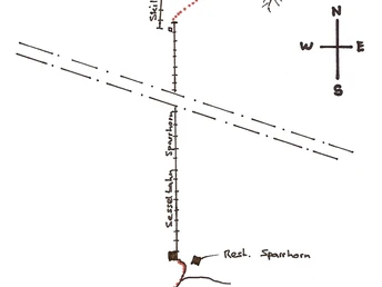 Von der Bergstation der Sesselbahn Sparrhorn gelangt man in rund 30 Minuten zu den Einstiegsstellen des Sektors Hülsenhorn und Sparrweng.