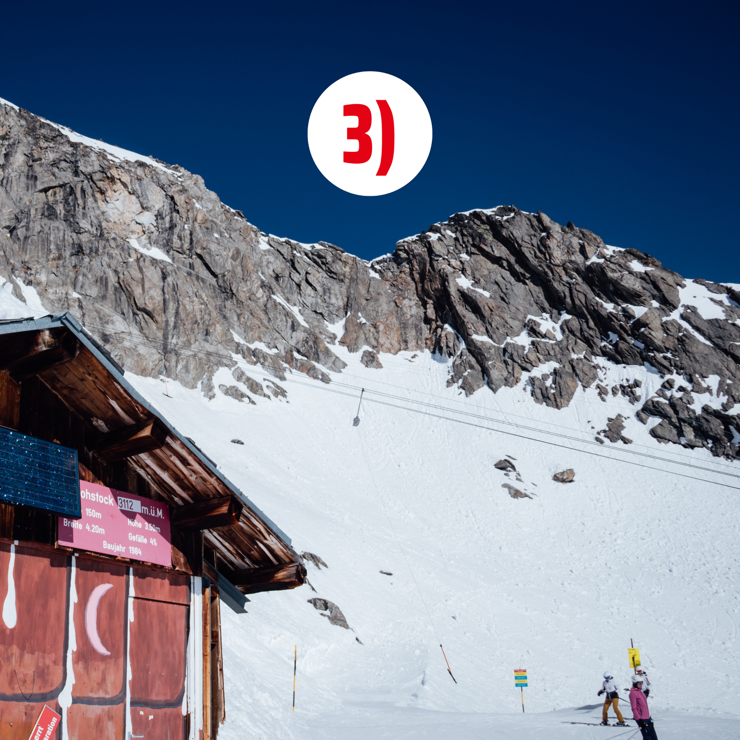 Opened in 1982, the Hohstock ski lift, which changes direction twice, is a highlight in itself - it is the last of its kind in Switzerland. Starting from Hohbiel at 2,654 m, the uniquely designed T-bar lift winds its way up a steep slope after a left turn and ends after another change of direction to the right at 3,113 m above sea level, just below the summit of the imposing three-thousand-metre Hohstock (3,226 m above sea level). The construction of the ski lift with its changes of direction and the way the rope is guided is considered a masterpiece by experts. But it is not only the experts who talk about the Hohstock lift with awe - skiers and snowboarders are also thrilled and at the same time always a little relieved when they have completed the ride.