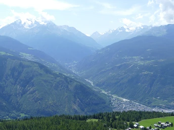 From the saffron village of Mund, this e-bike and mountain bike trail follows the road and meadow paths up to Salwald, where the Salwald Restaurant invites you to a first stop. Along the forest road, you pass the settlement of Chastler and climb up to Alp Brischeru. A picturesque spot with a magnificent view.