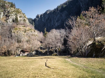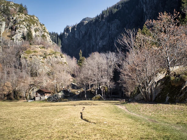 La descente de Blatten à Geimen à travers la vallée Blindtal est recommandée uniquement aux cyclistes expérimentés. Jusqu'à Blindtal, le chemin est raide avec de nombreux virages serrés. Attention : le chemin est emprunté par de nombreux randonneurs, surtout des familles.